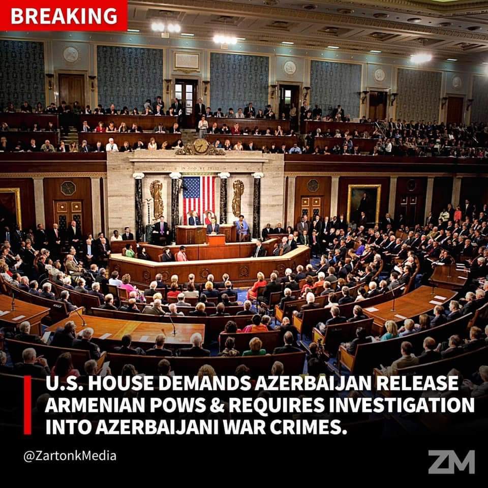 ԱՄՆ Կոնգրեսը ընդունել է կարևոր բանաձև, որով կոնգրեսականները պահանջում են ադրբեջանից անհապաղ եւ առանց նախապայմանների ազատ արձակել բոլոր հայ գերիներին։