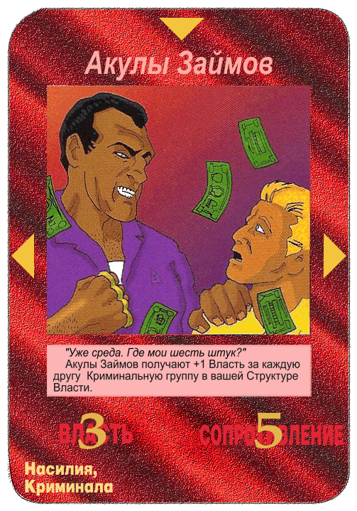 Акулы Займов получают +1 Власти за каждую другу Криминальную группу в вашей Структуре Власти.