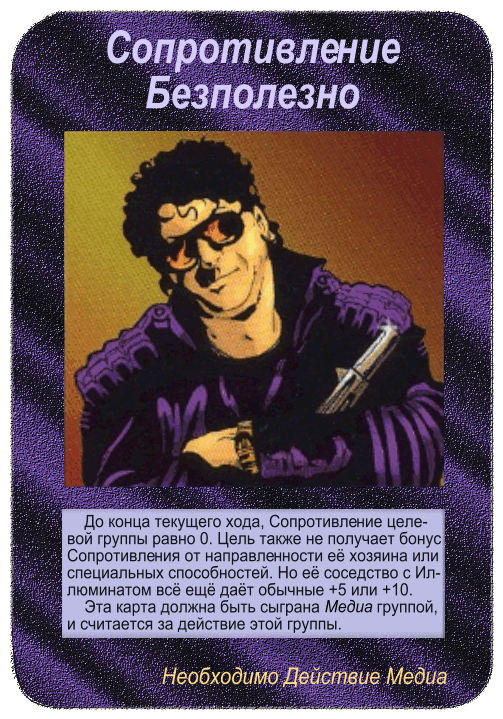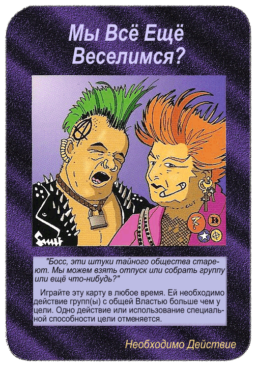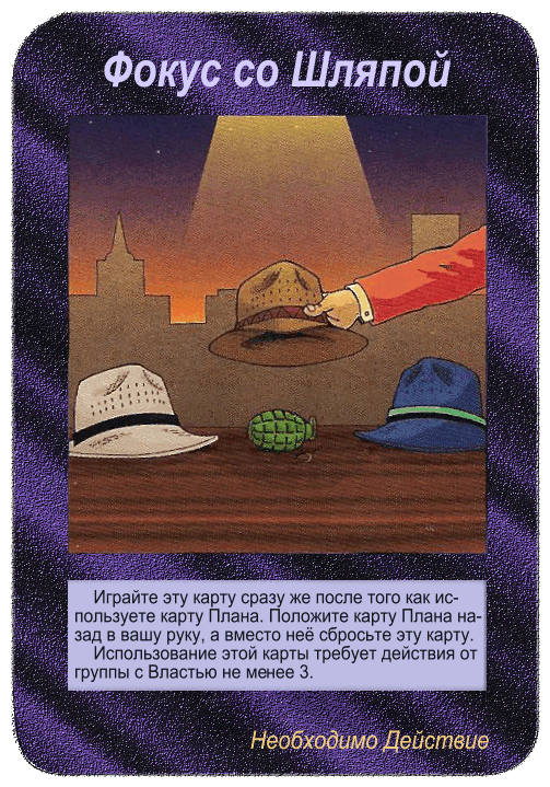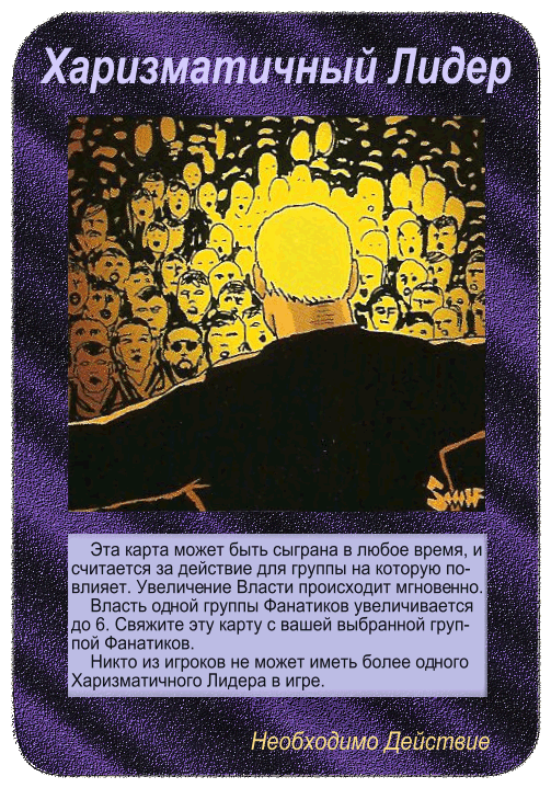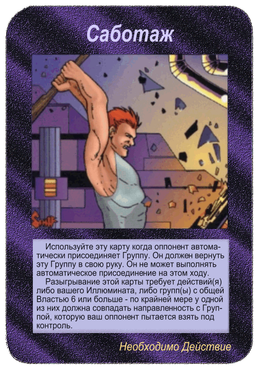 Играйте эту карту в любое время. Этой карте необходимо действие одной группы с Властью 4 или больше.