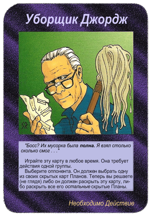 Выберите оппонента. Вы можете посмотреть на все его закрытые карты Плана и выбрать одну, которую он сбросит!