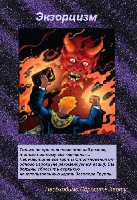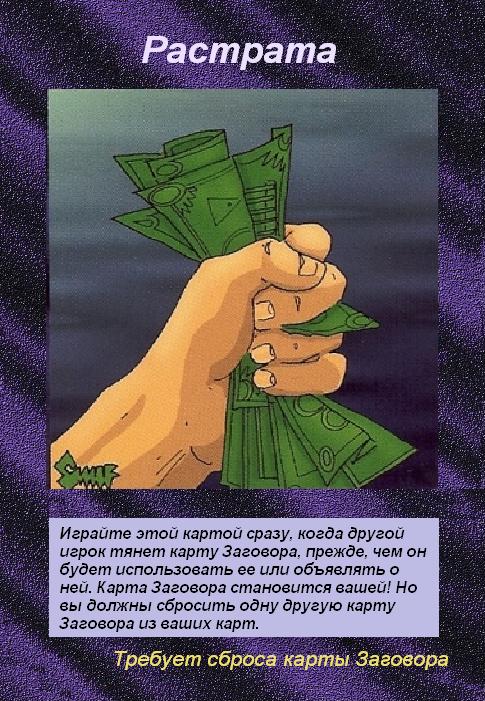 Играйте этой картой сразу, когда другой игрок тянет карту Заговора, прежде, чем он будет использовать её или объявлять о ней. Карта Заговора становится вашей! Но вы должны сбросить одну другую карту Заговора из ваших карт.