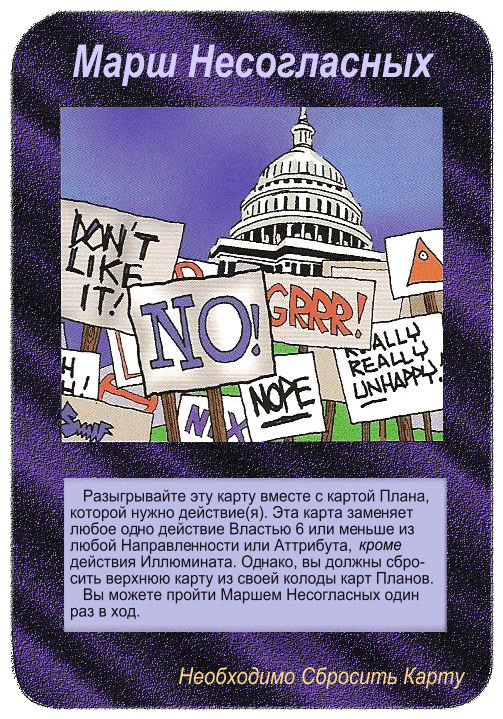 Требует действия Иллюмината или сброса двух карт Заговора.