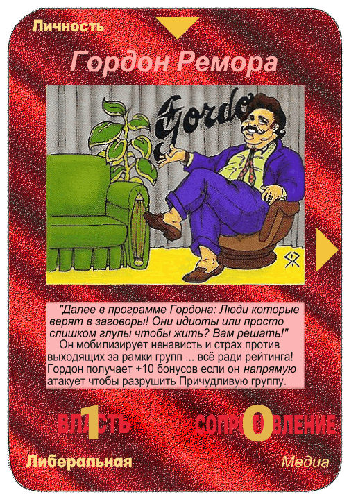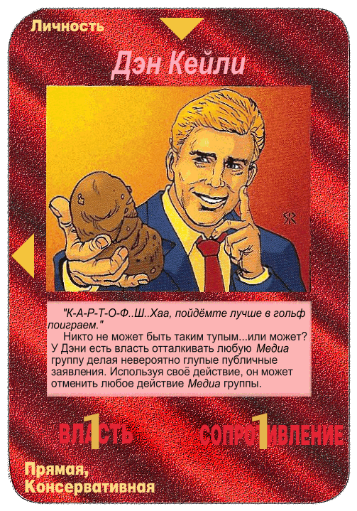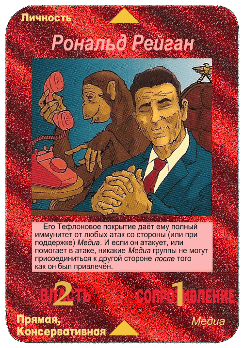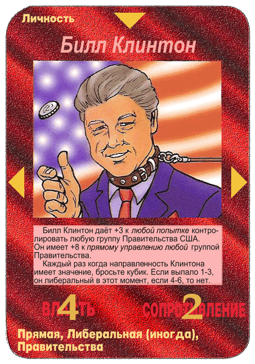 Билл Клинтон даёт +3 к любой попытке контролировать любую группу Правительства США.
