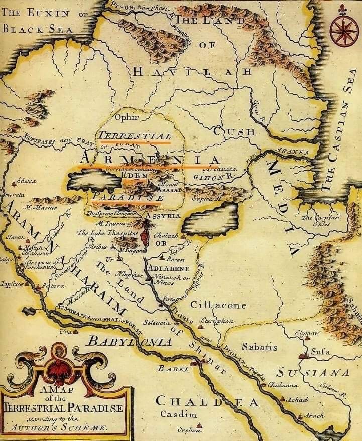 Земной рай в Армении согласно Эммануэль Боуэн, 1694-1767 гг., британскому королевскому картографу.