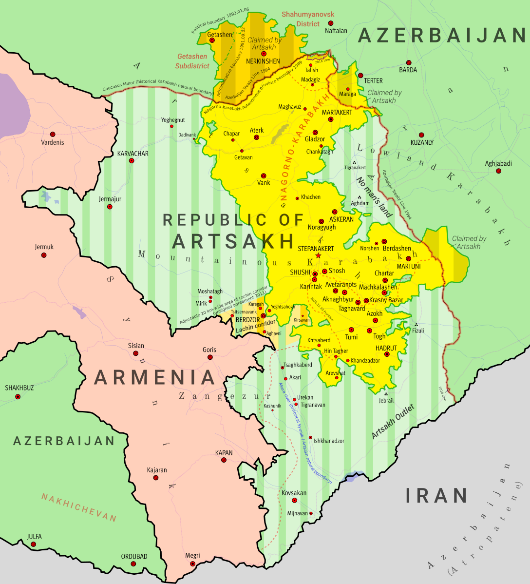 НКР до вооружённого конфликта осенью 2020 года, занимала территорию бывшей НКАО.