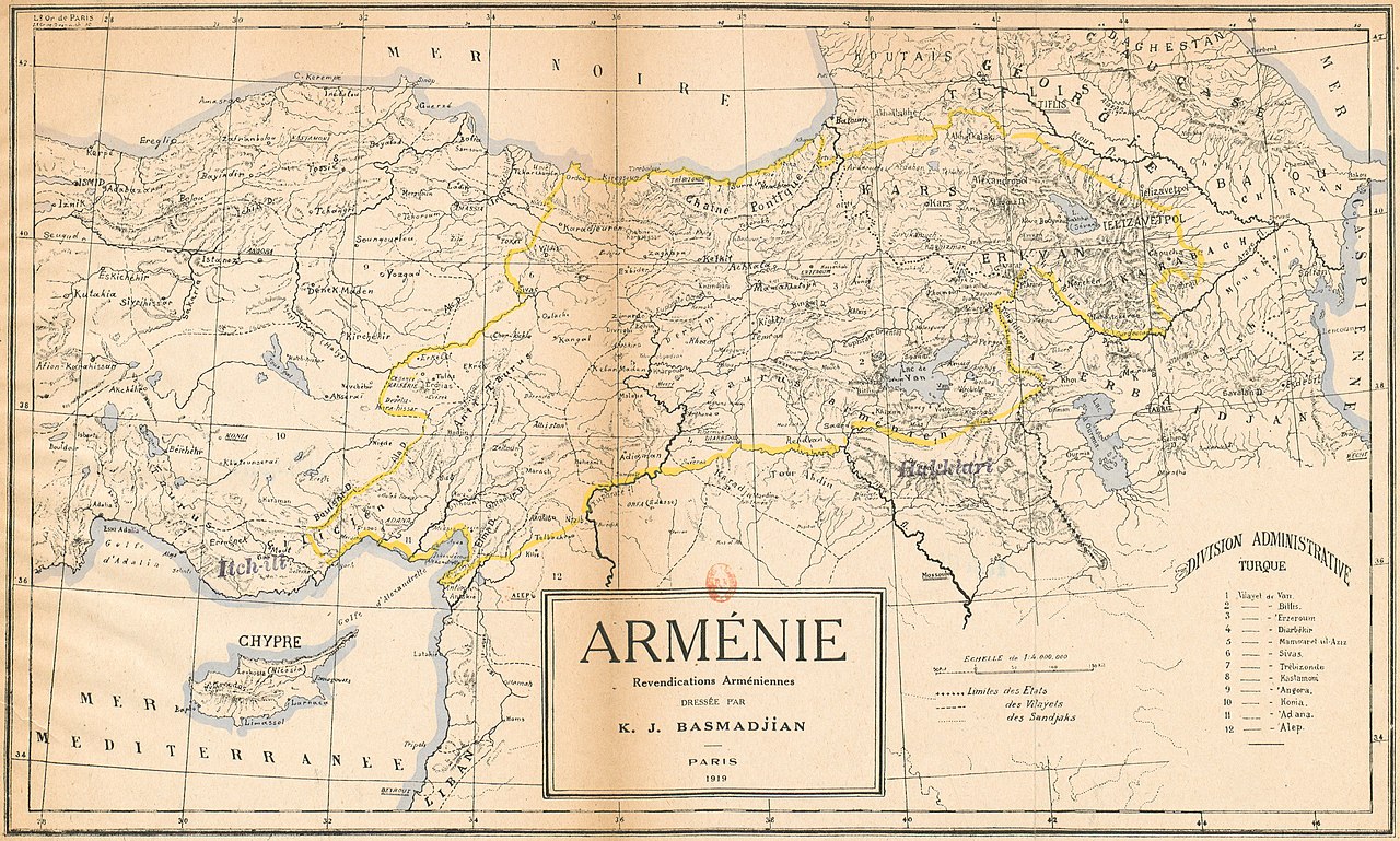 The First Republic of Armenia, with the western borders defined by US President Woodrow Wilson