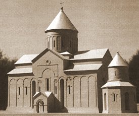 This theory was first proposed by Nikoli Marr, who thought the Cathedral too advanced to be entirely from the 10th century. He tried to explain away the numerous pre-13th century inscriptions on its walls by saying that they were 13th century copies of earlier originals. The theory lacks credibility - there is no structural evidence to back it up, and the exterior details (the position of the arcades, the windows, the niches, etc.) are too closely integrated with the interior to be from a different period.