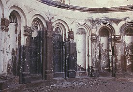 There are entrance doorways in the north, south and west walls - these traditionally were for the patriarch, the king and the people respectively. Standing out in front of each doorway was originally a vaulted porch now mostly destroyed, probably a canopy resting on free-standing pillars.