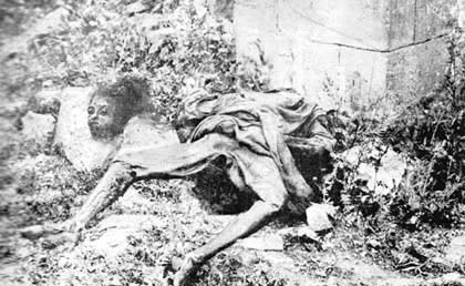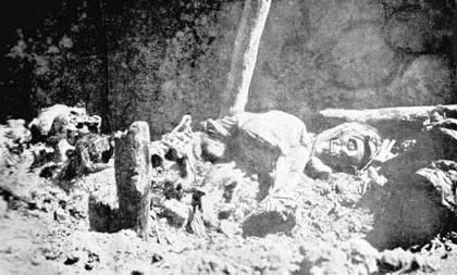 Skeletons of tortured Armenian children and women near monastery of Mush