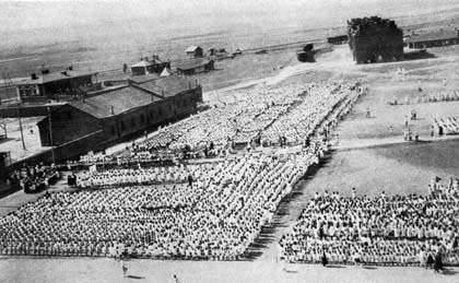 Group of Near East Relief orphan girls at summer camp. Below: Alexandropol: "Hands up", Polygon orphanage massed drill, October, 1925