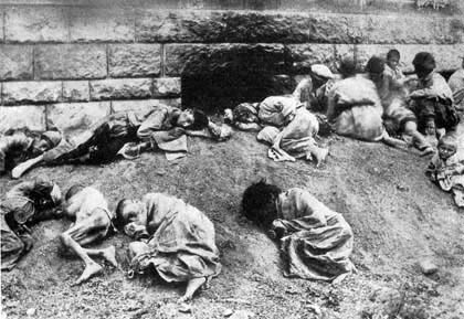 Children waiting in the snow for admission into the 'Orphan City', a daily spectacle from the early morning until late at night