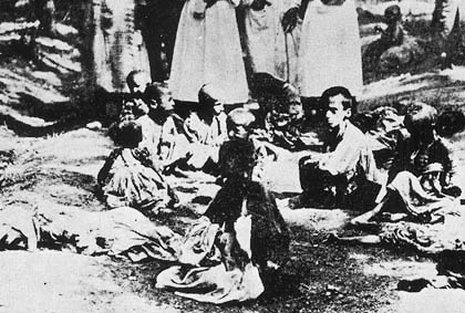 "The refugee home, a few feet of earth or stone: its occupants waiting for death or deliverance as they solely started"