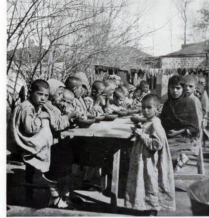 At Igdir, Armenian children eating their dole of boiled rice supplied by the American Committee