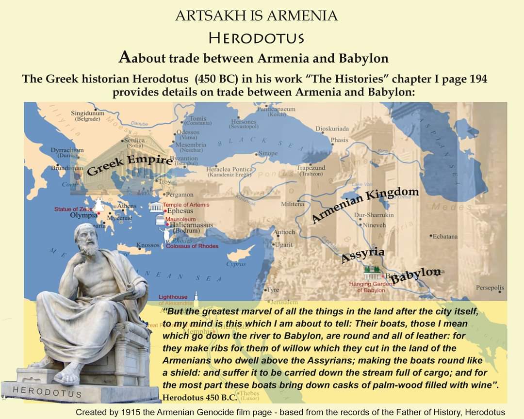 Artsakh is Armenia, Says (the Father of History), Greek Historian Herodotus 450 B.C. Artsakh is Not, Internationally recognized part of Azerbaijan; Why? Because, History is the Greatest Enemy of Turkey and Azerbaijan! Herodotus wrote about Armenia 450 years before the birth of Christ! Which is a poison pill for Azerbaijan's Genocidal Dictator Aliyev who makes daily territorial baseless claims on Armenian lands. Where were the Turks and Azeris 2450 years ago?